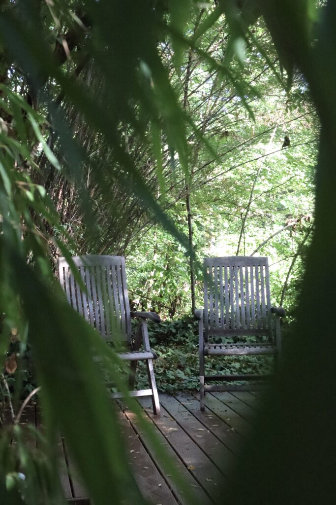 This upstairs studio is located near the center of the village with a view of the creek, its own private bathroom and a queen size bed. Price per night: $170 for two people, breakfast included. Image below is the view from the studio porch of owner, Ken, in our outdoor kitchen.
